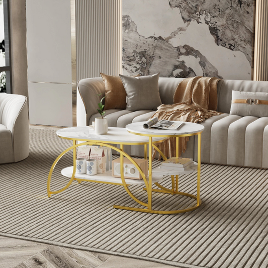 Set de tables basses gigognes ovales dorées
