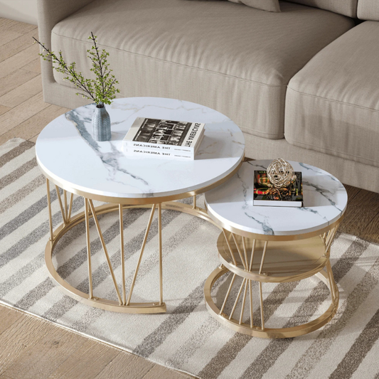 Tables basses rondes moderne gigognes blanche & dorée