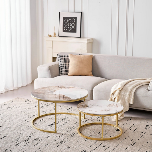 Tables basses rondes moderne gigognes blanche & dorée